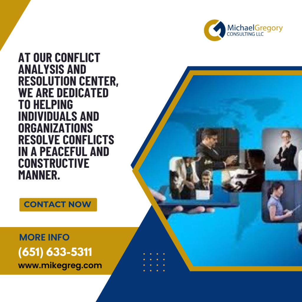 If you’re facing a conflict and need help finding a peaceful resolution, Michael Gregory Consulting, LLC is here to assist. Reach out to us today at mg@mikegreg.com or call 651-633-5311 to discover how our mediation services can support you in overcoming disputes with dignity and respect.